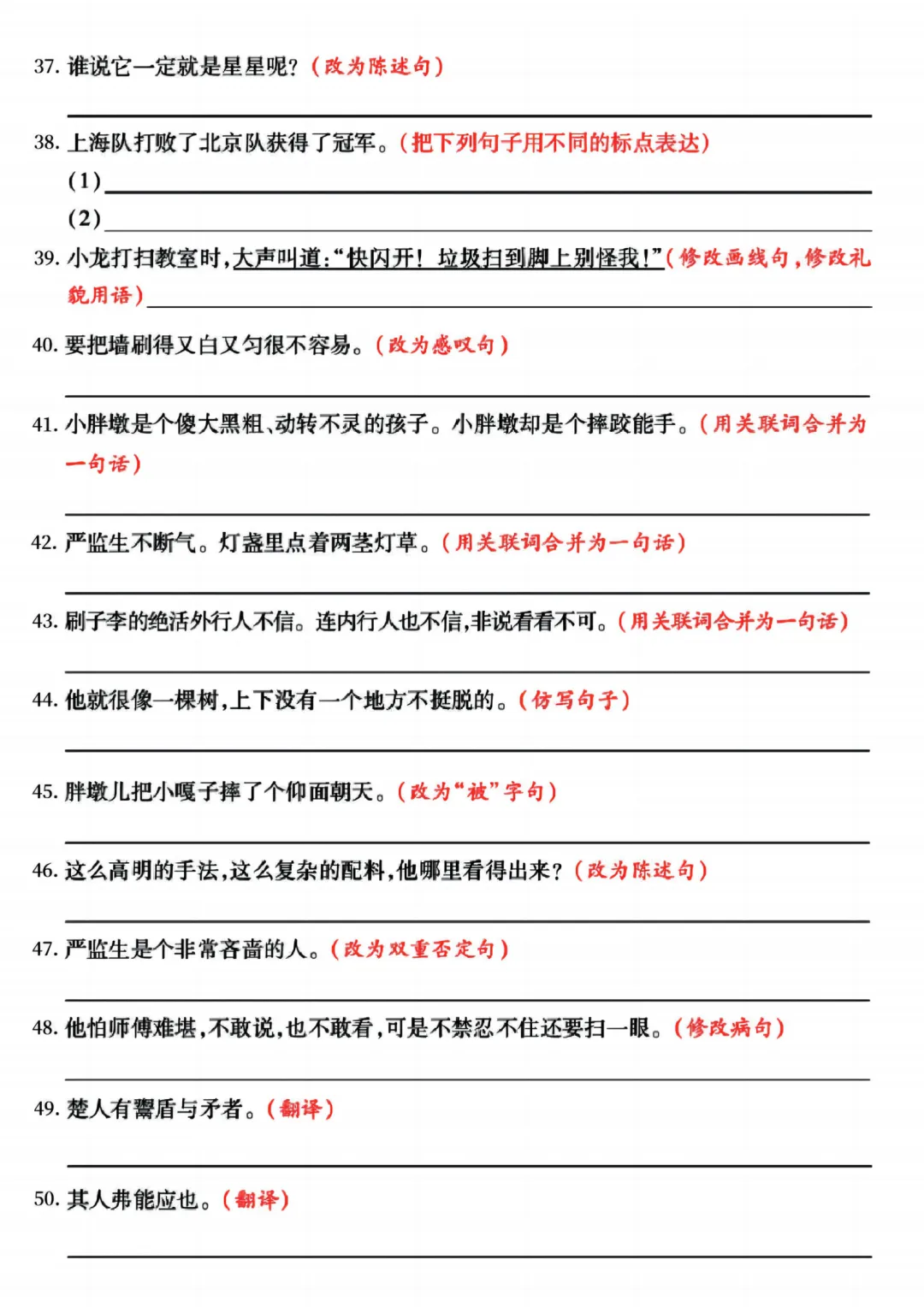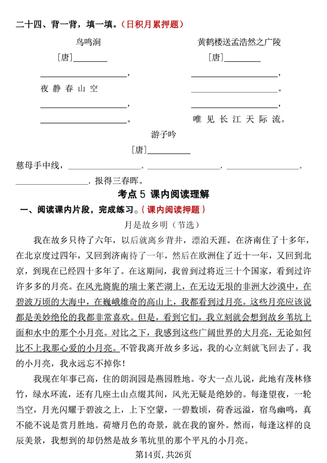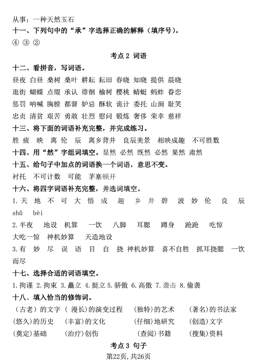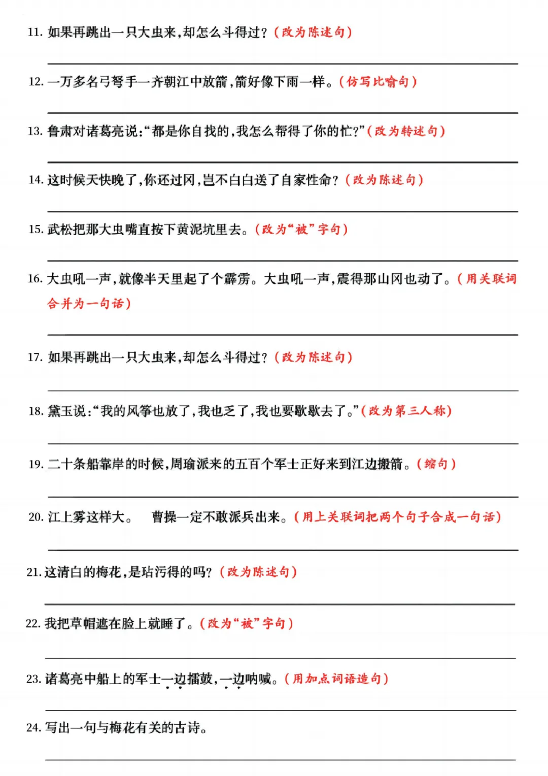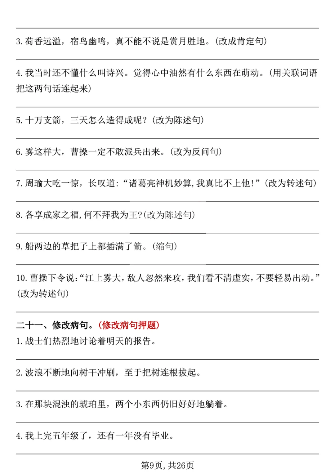 26春五年级下册语《期中复习专项押题版+句式拔高训练76道》含答案可打印
