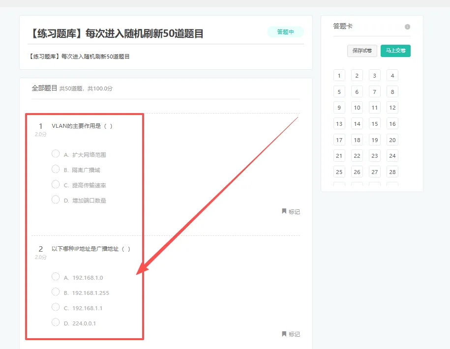 设置网络工程和人工智能知识两个独立赛道,考察客观题型,设置单选题、多选题、判断题;