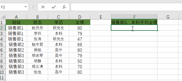 意思就是:在D列求平均值,但前提是A列必须是“销售部3”,C列必须是“本科”。