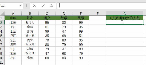 什么时候用?想知道“1班”里“英语考了99分”的有几个人。单个条件用COUNTIF,多个条件就用COUNTIFS。