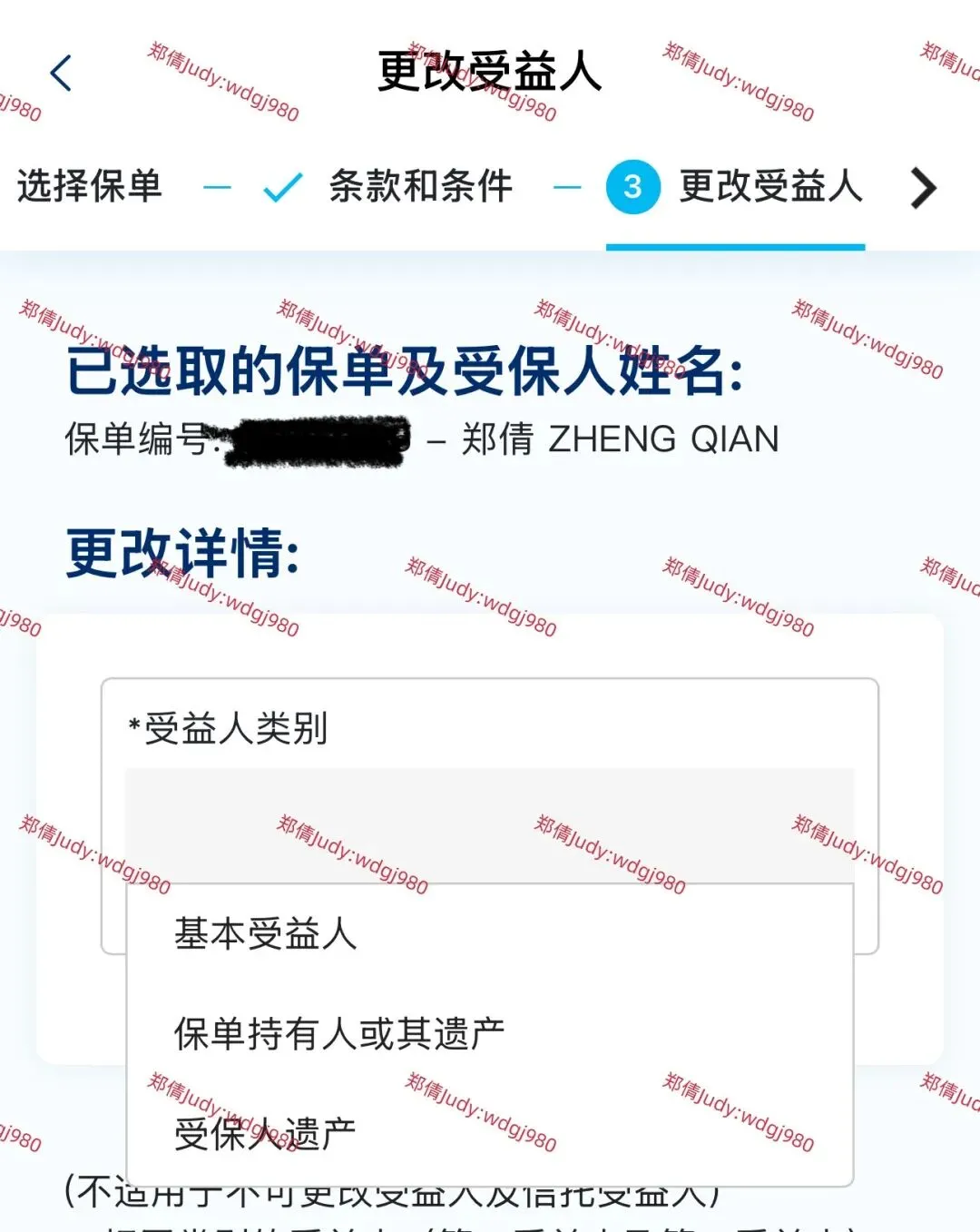 香港万通保险公司APP,更改受益人流程