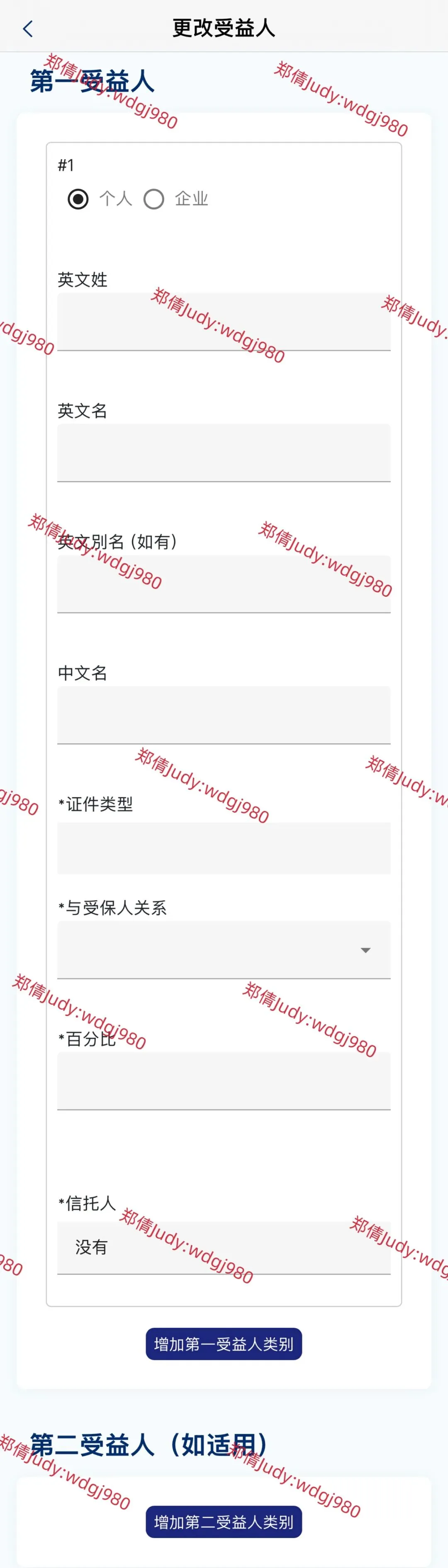 三:选择基本受益人(指定受益人),按要求填写受益人信息