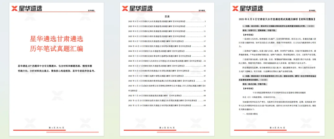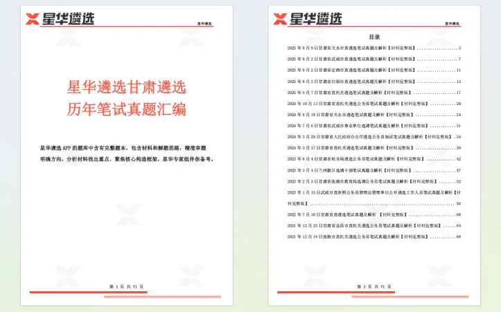 星华遴选特别整理《甘肃遴选历年笔试真题汇编17套》,涵盖2021-2025年省直及各机关笔试真题,透视本省考点,掌握必考题型,提高应试能力!🚀