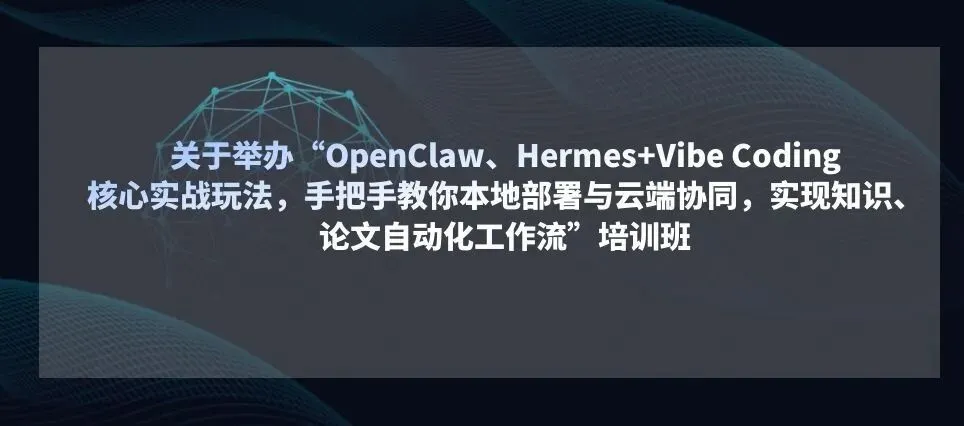 🌟 课程一:关于举办“OpenClaw、Hermes+Vibe Coding核心实战玩法,手把手教你本地部署与云端协同,实现知识、论文自动化工作流”培训班