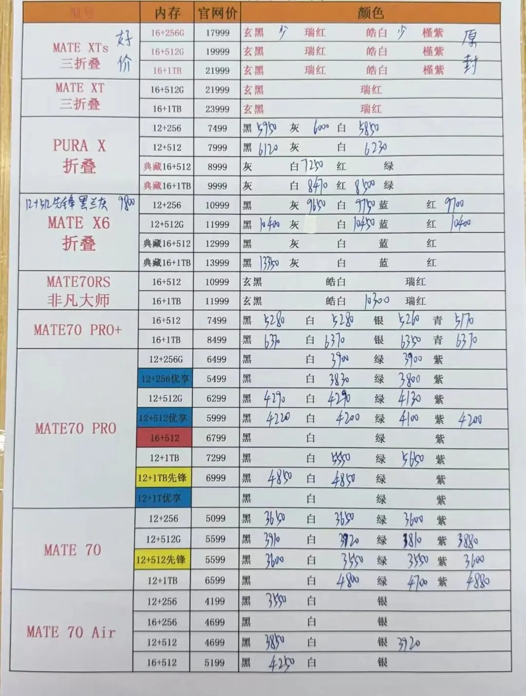 4月13日更新 全新华为MATE70,安卓三星荣耀 小米 OPPO机器一系列报价