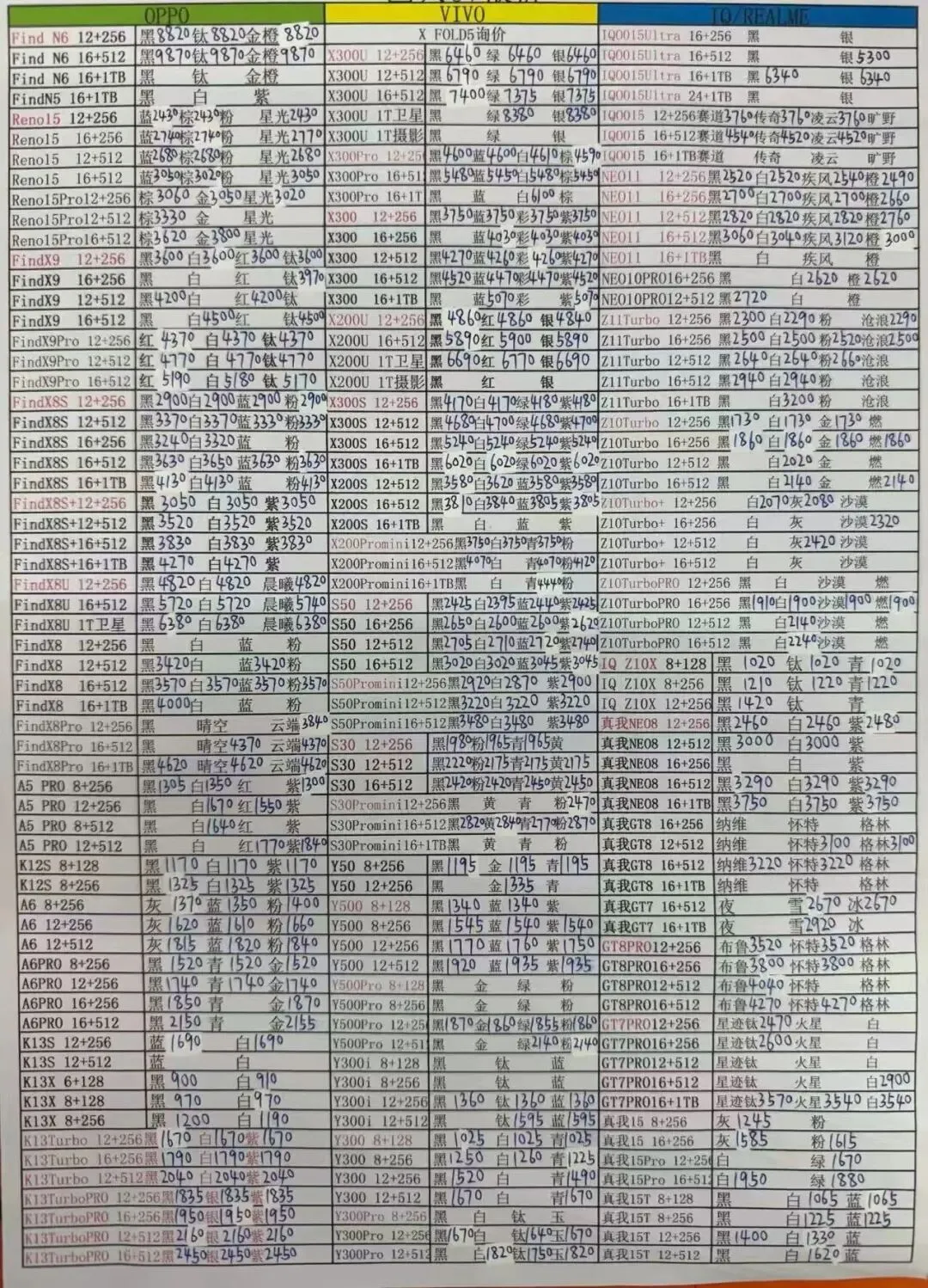 以下报价为深圳华强北商家交易底价,根据不同的提货量有相应的加价!零售:2500元以内的机器在报价的基础上每台加50;2500元以上的机器在报价的基础上每台加100