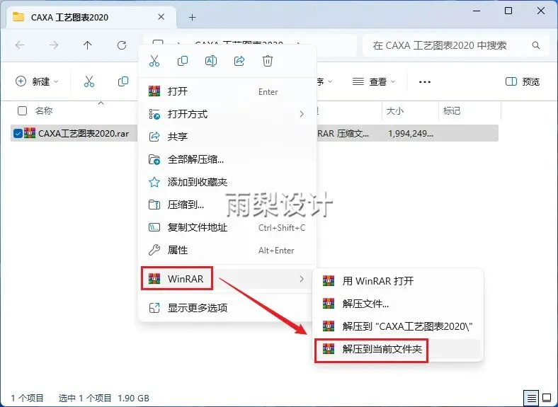 1.右键【下载的安装包】选择【解压当前文件夹】