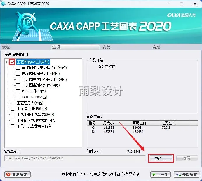 5.勾选【工艺图表(64位)】,点击【更改】
