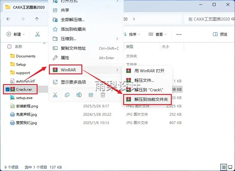 11.返回安装包;右键【Crack】选择【解压到当前文件夹】