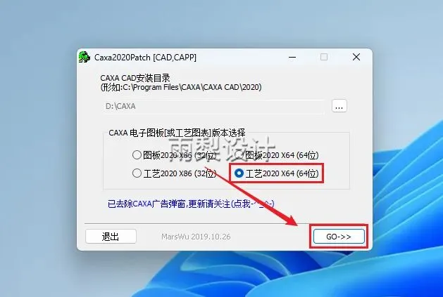 13.选择【工艺2020 X64(64位)】,点击【GO】