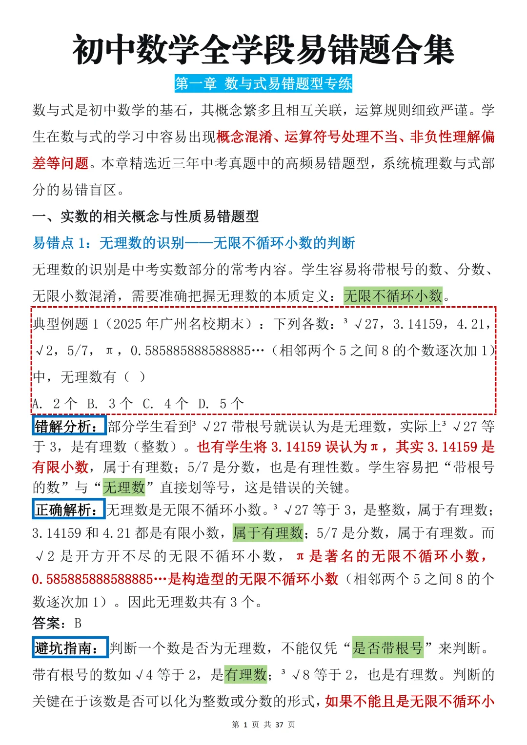 中考数学必背【易错点大全】,可打印 快收藏 初中数学提分有妙招,核心关键在 “易错点的辨析”。各个专题易错点的积累是根基,尽管题型灵活多变,答题核心的本质始终不变。 今天给大家整理了中考必备的【中考数学最全易错点知识总汇(全年级覆盖)】,不管题目如何变式,都能让表达更出彩,轻松拿下高分! 因篇幅有限,点击我的头像私信我回复 “资料获取” 就可以领取 word 电子版。以下是部分资料内容,完整高清版的发送私信即可。 受文章篇幅限制,仅能分享部分内容~ 领取方法: 1、先下方点👍“赞”➕♥“推荐,然后关注下方公众号 2、在对话框中回复“ 资料获取 ”即可获取完整电子版 更多资料及学习方法持续更新中……