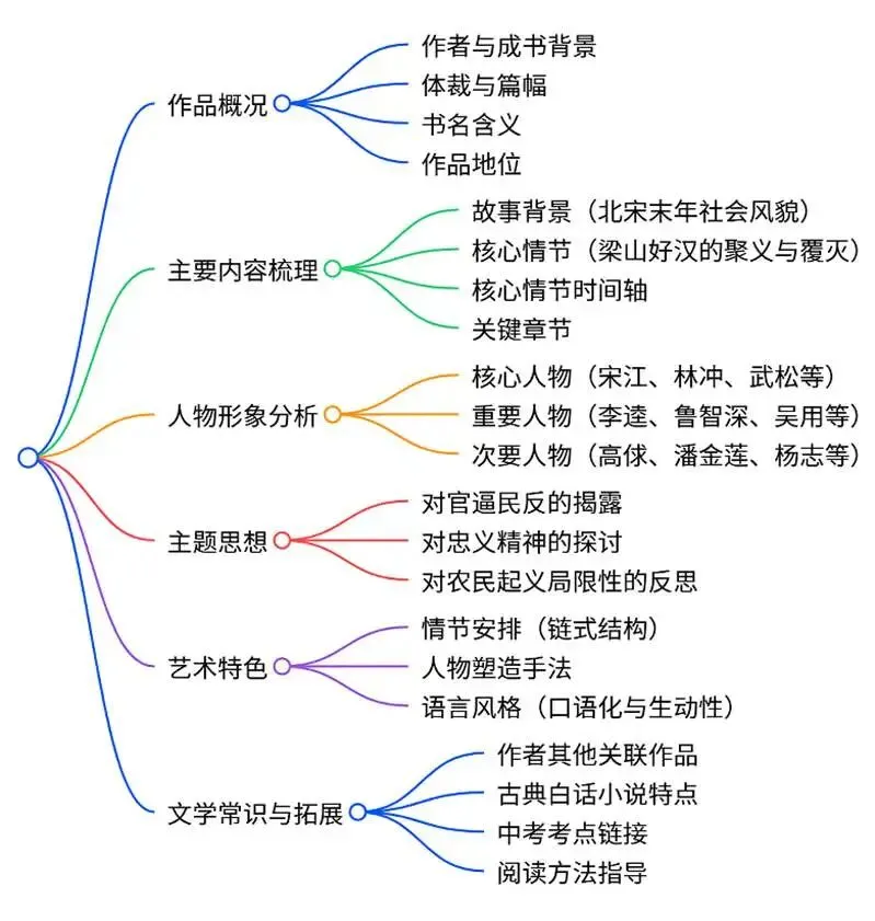 书中没有华丽的辞藻,却有着比传奇更震撼的“江湖”—— 林冲被陷害后的隐忍与反抗,武松打虎的英勇与快意,鲁智深拳打镇关西的侠义与坦荡,还有宋江带领好汉们 “聚义梁山” 的热血、“接受招安” 的争议,都藏着对社会现实的深刻洞察和对人性的细致描摹。这份知识清单会用表格、通俗解读等形式,帮你梳理书中的重点情节、人物性格和主题思想,既能让你读懂梁山好汉的热血与无奈,也能掌握考试必备的知识点,为阅读和复习打下坚实基础。