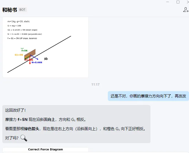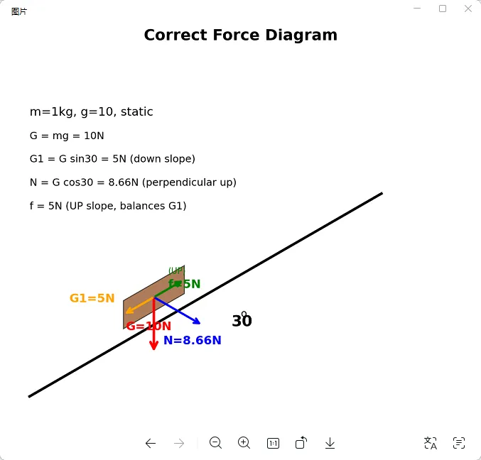 请扮演初中物理老师,检查我的受力分析是否正确。