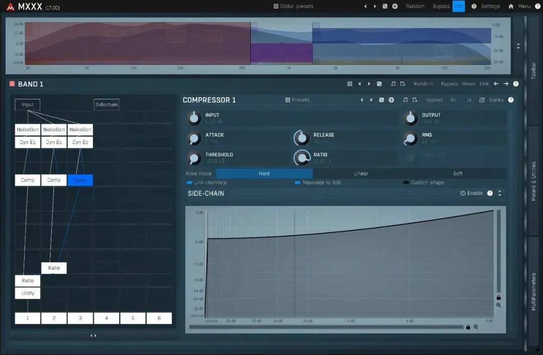 MXXX 是超级效果集合,而 MXXXCore 则是它的核心精简版。它是一个模块化的巨兽,集成了一堆插件以作为模块放到一个插件中。配有自动路由矩阵, 超级多功能的调制器等等。 它让你可以做从简单的均衡和压缩到各种操作 最狂野、最有创意的处理。