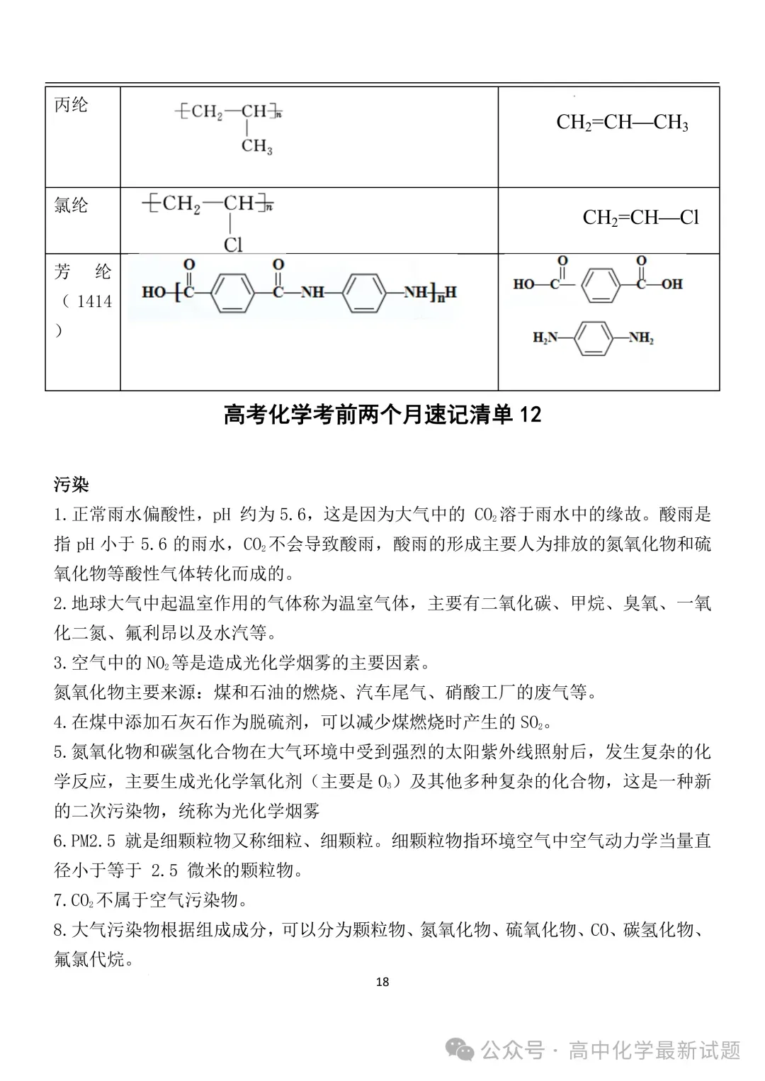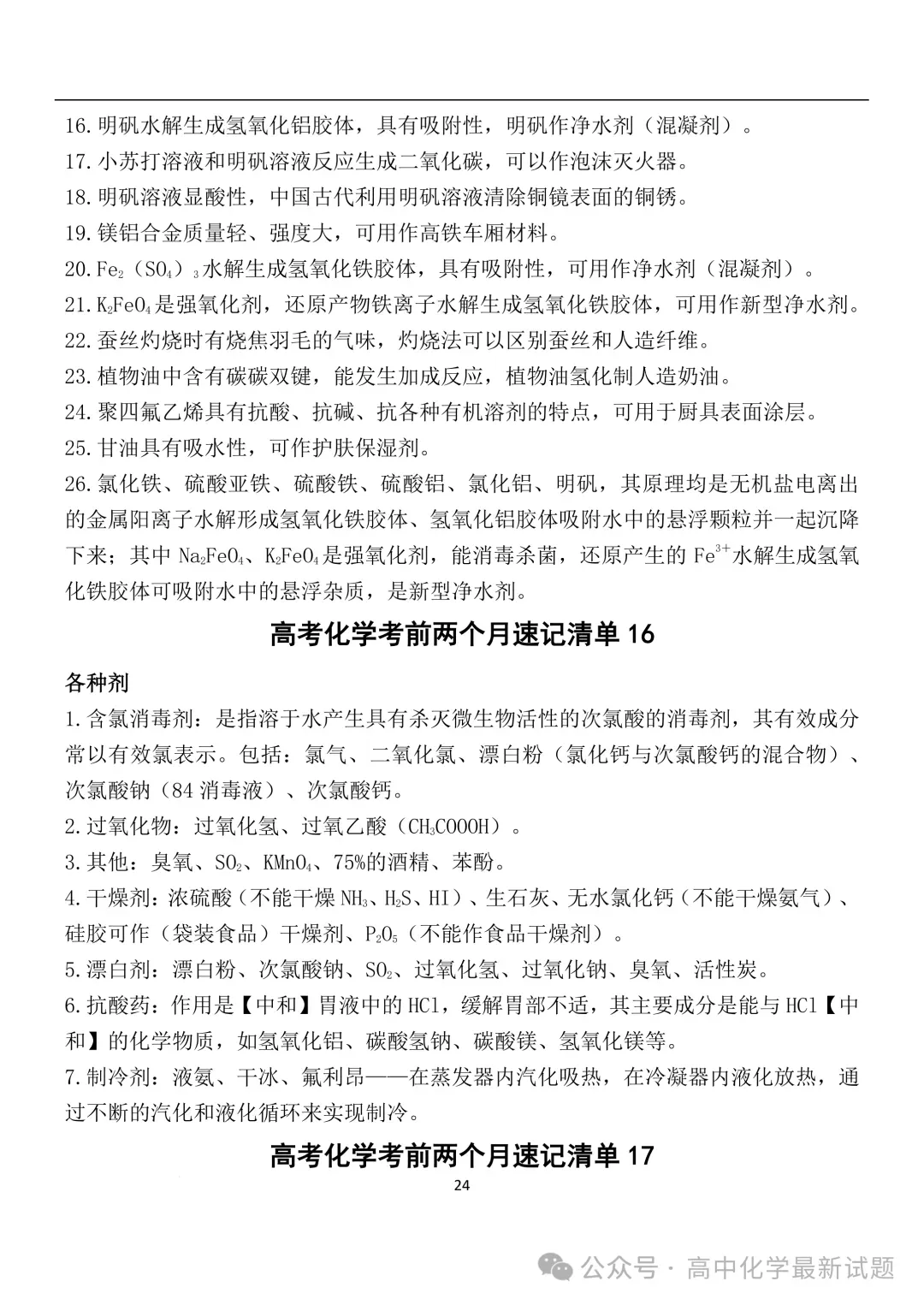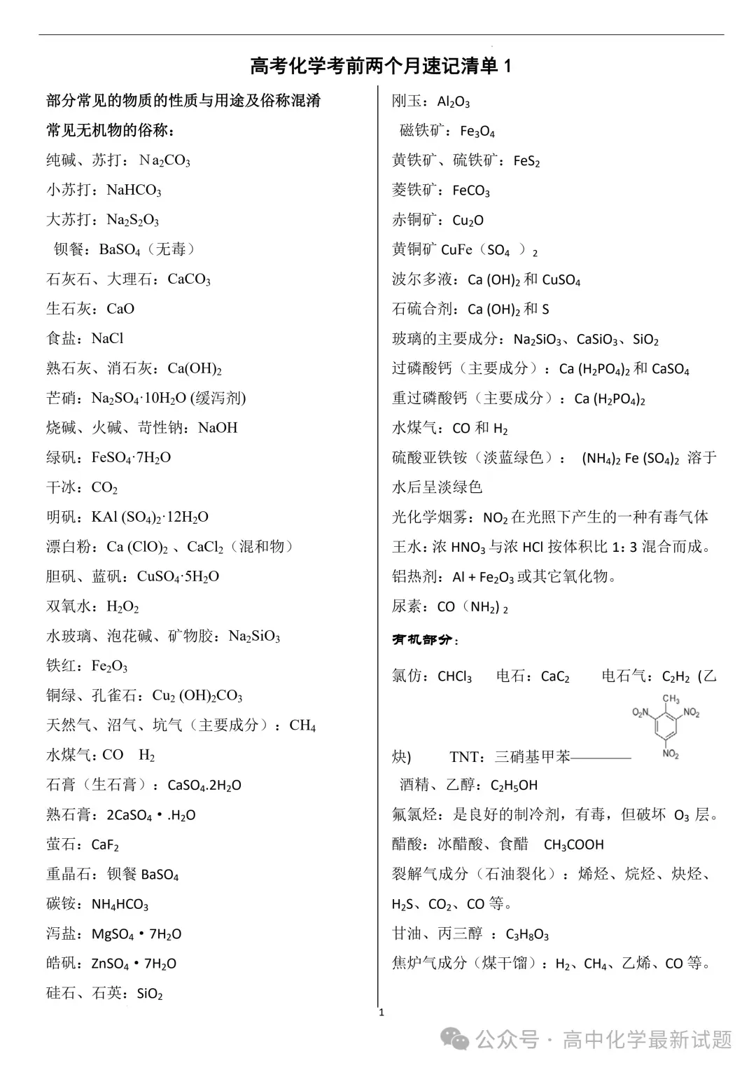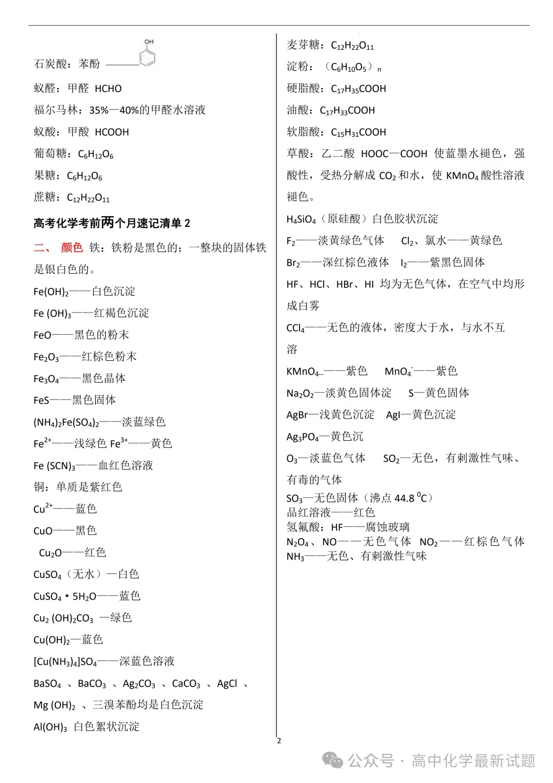 2026届高三化学:考前两个月速记清单PDF免费下载