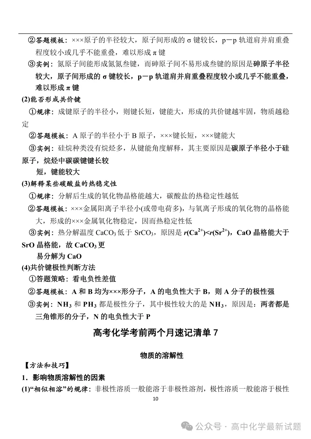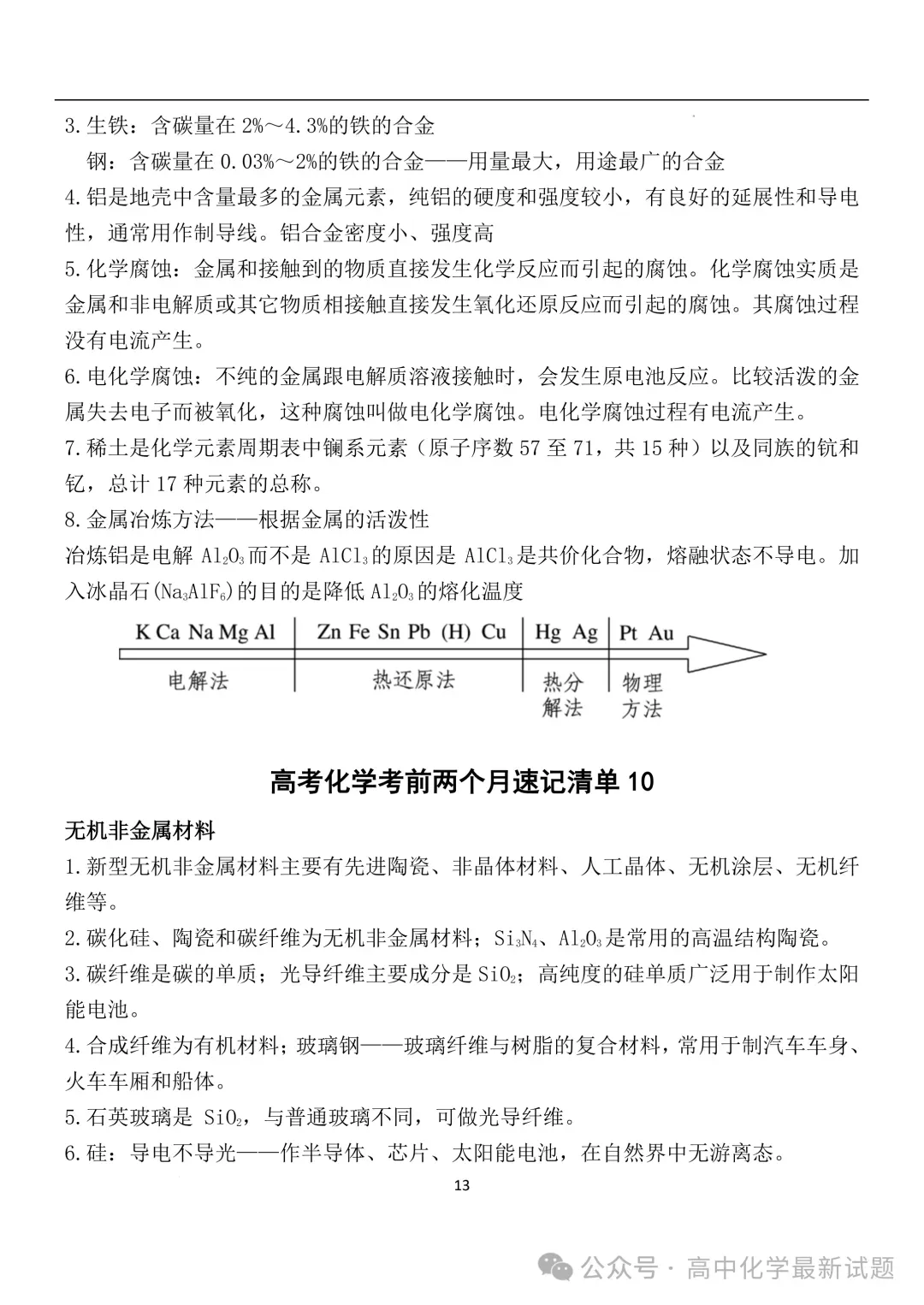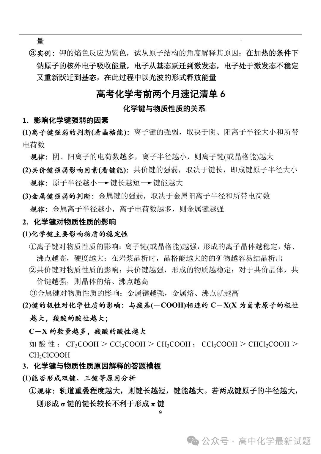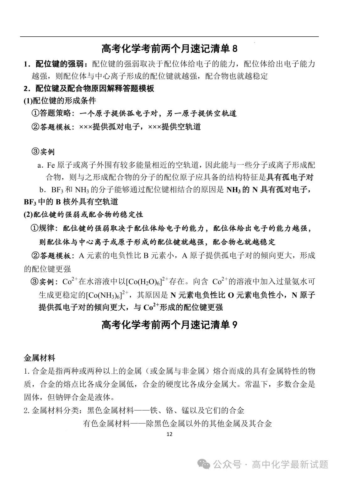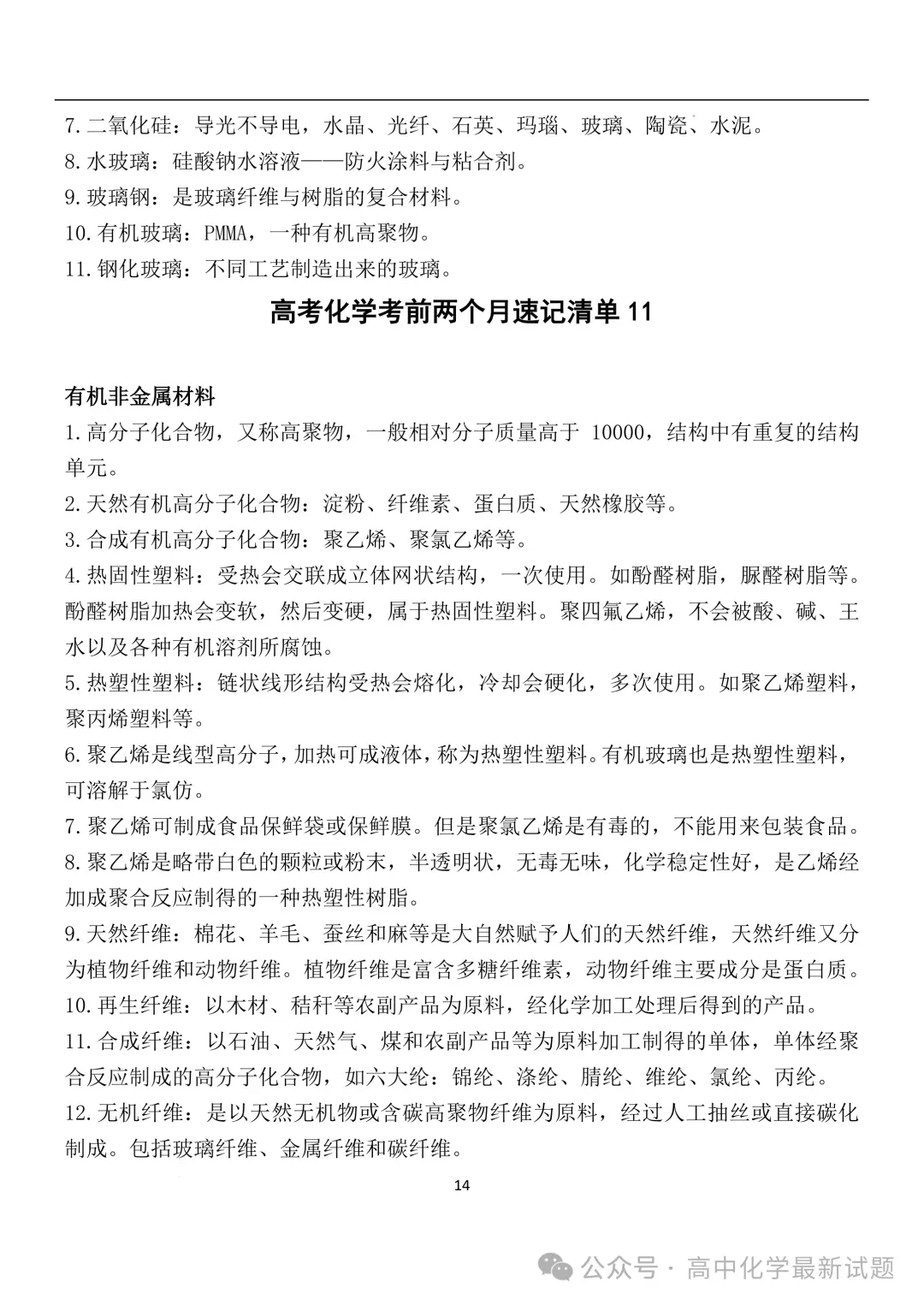 2026届高三化学:考前两个月速记清单PDF免费下载