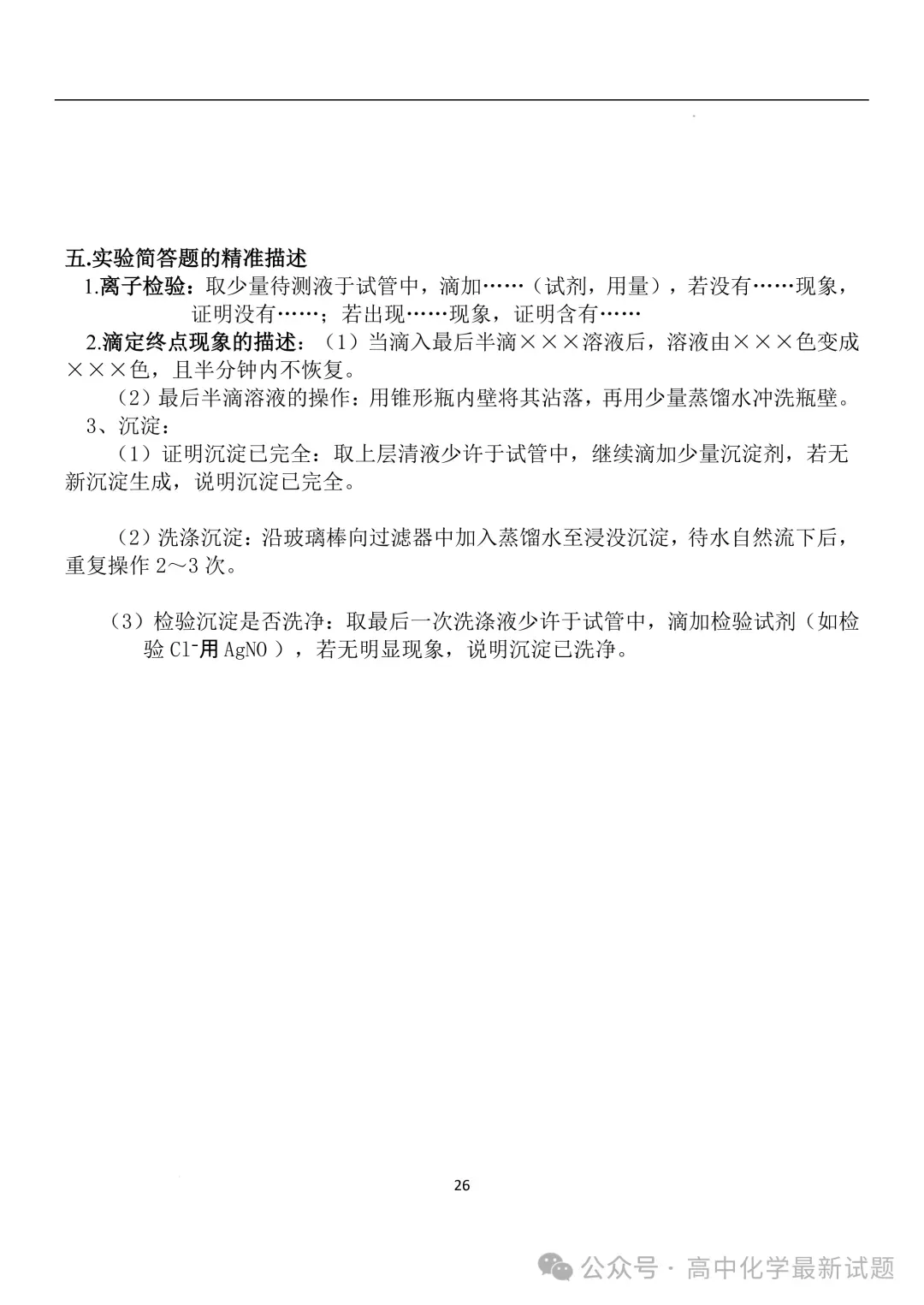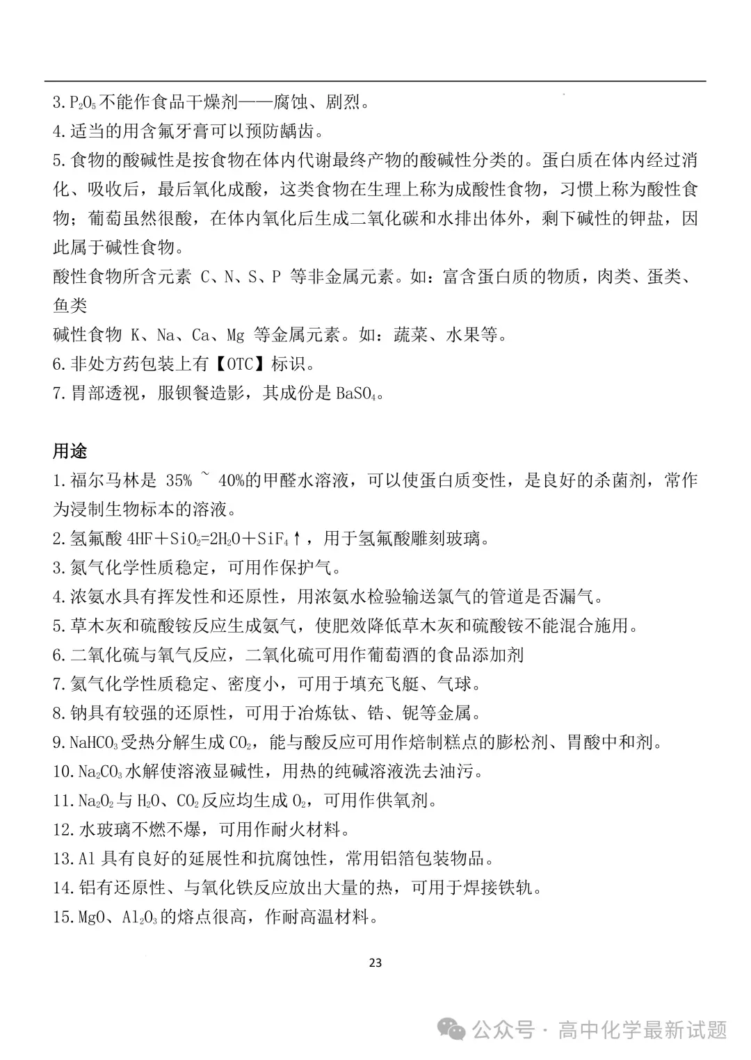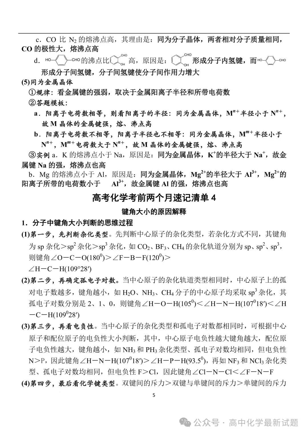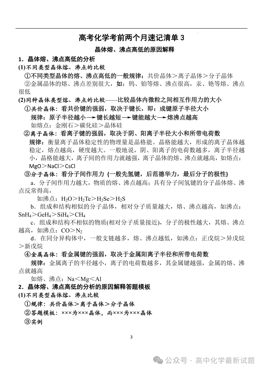 2026届高三化学:考前两个月速记清单PDF免费下载
