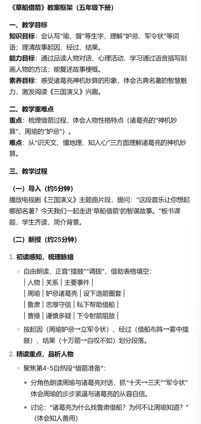 快速生成教案框架