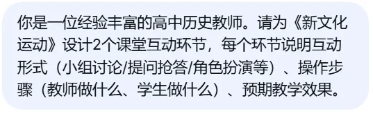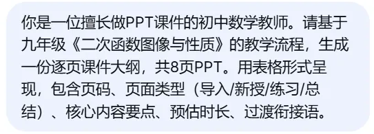 这5个提示词覆盖教案生成、备课设计、课件制作、作业分层等真实教学场景,复制粘贴就能用,以下示例均用DeepSeek专家模式生成。