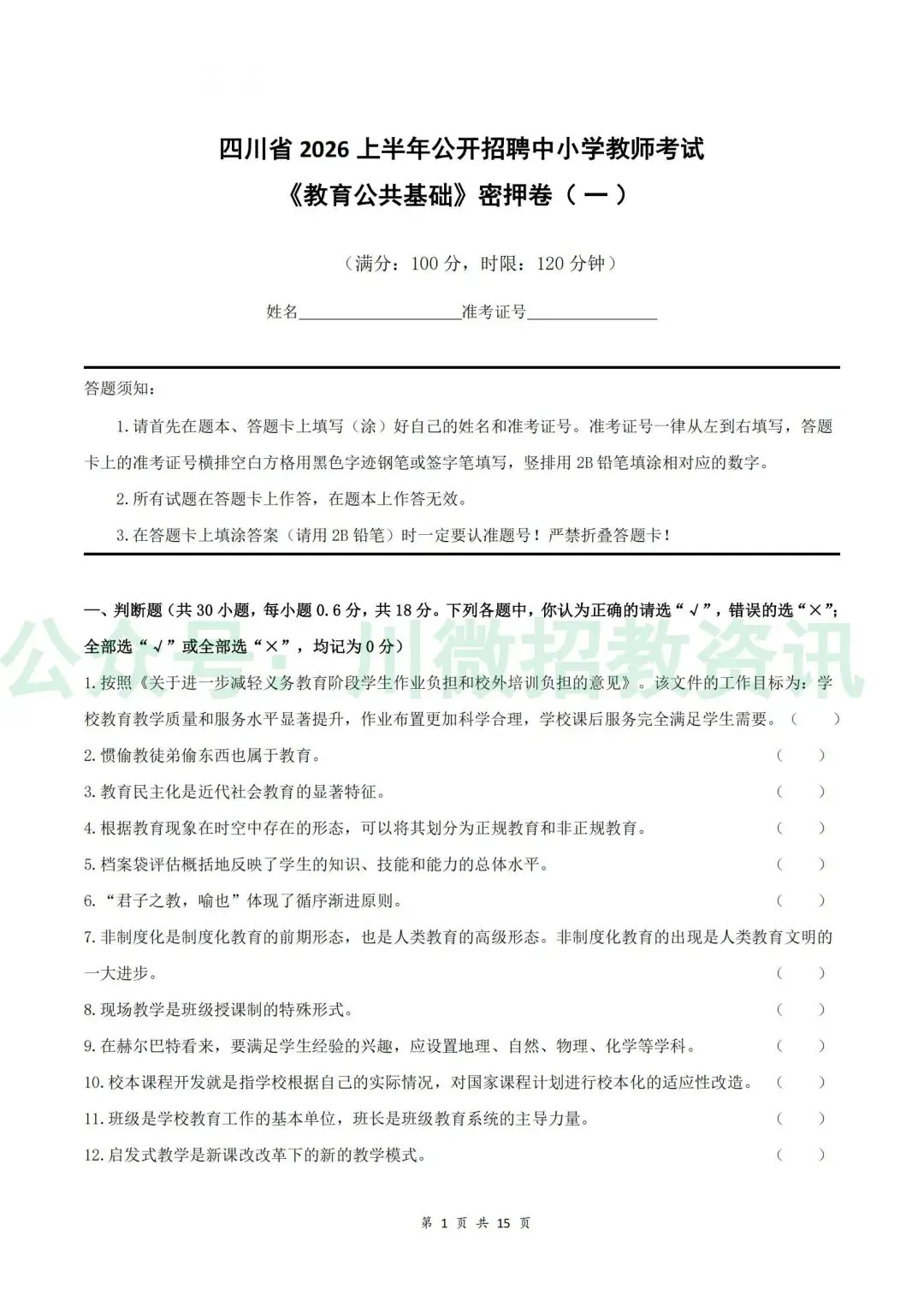 【2014-2025连续12年 四川教师公招笔试真题】
