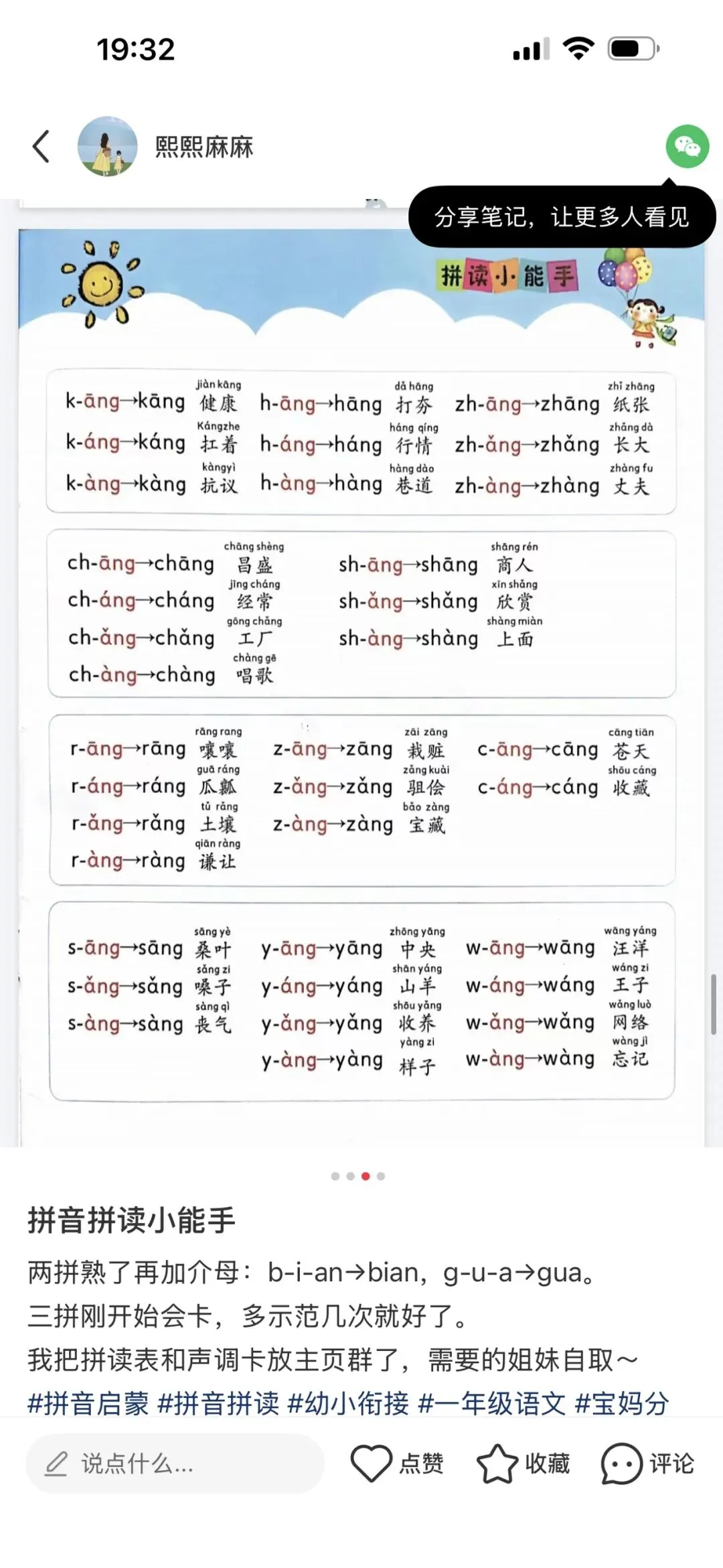 拼音拼读,可打印 两拼熟了再加介母:b-i-an→bian,g-u-a→gua。三拼刚开始会卡,多示范几次就好了。我把拼读表和声调游戏卡放主页群了,需要的姐妹自取~#拼音启蒙 #拼音拼读 #幼小衔接 #一年级语文 #宝妈分享