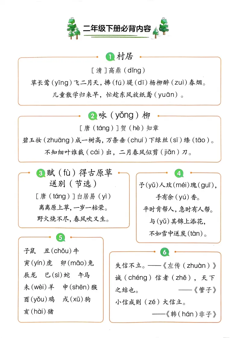 26版小学语文1-6年级下册《必背内容》