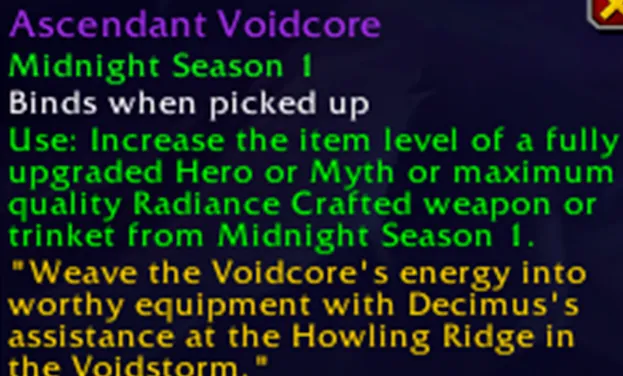 大盘装备体系也出现了重组。12.0.5版本会推出史诗级的新材料晋升虚空核心(大秘境、团本以及地下堡都可以获得)。