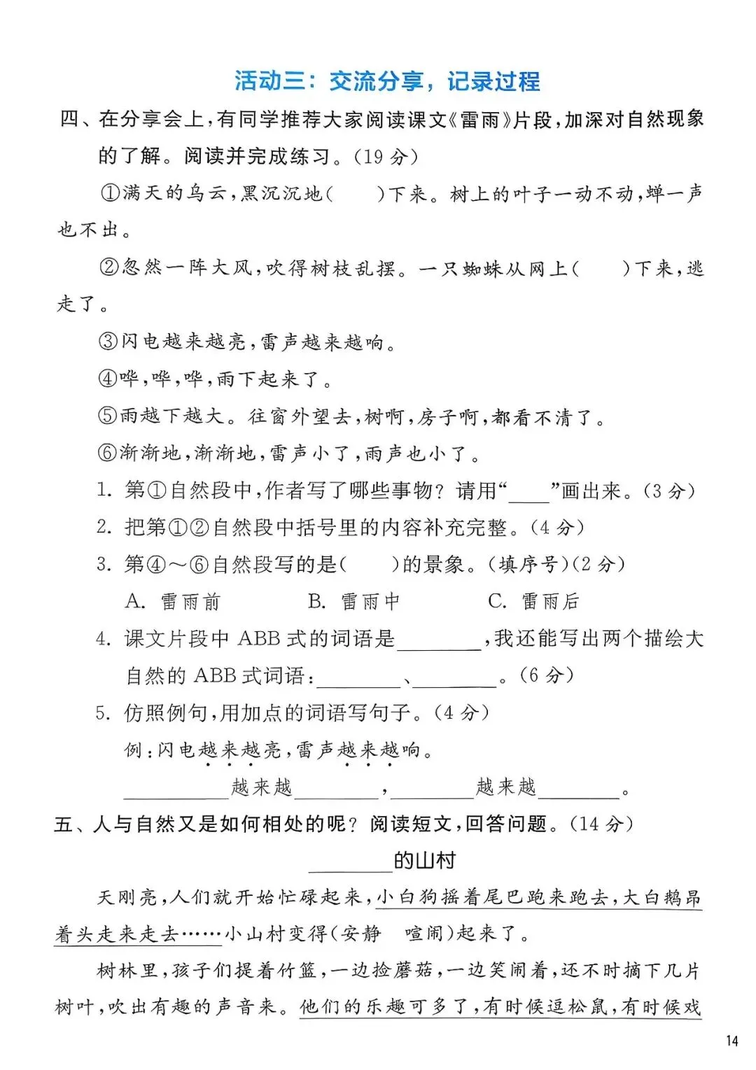 部编版二年级语文下册,第六单元检测卷,可下载
