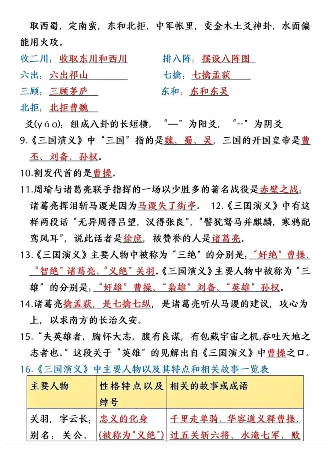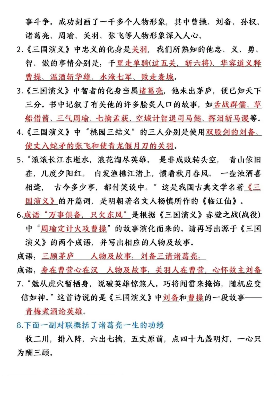 大家好,今天给大家分享的是五年级下册语文四大名著常考知识点【可下载可打印】,关注我,每天持续分享更多的优质学习资料。