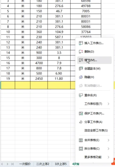 首先我们把鼠标点击到要发送的那个表,我这里以4次最终版为例,点进这个表里,点击鼠标右键,选择移动↓