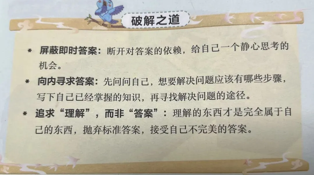 经过三个思考,哪怕最后还是没做出来,这个拆解的过程,已经让孩子完成了一次深度思考,远比抄一个答案有价值得多。以上三个问题,在他日后遇到问题时,按这个方法去问自己。