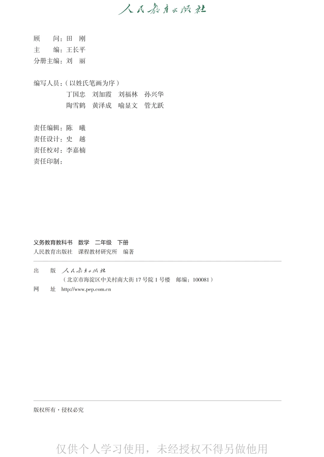 2024版人教数学二年级下册电子课本
