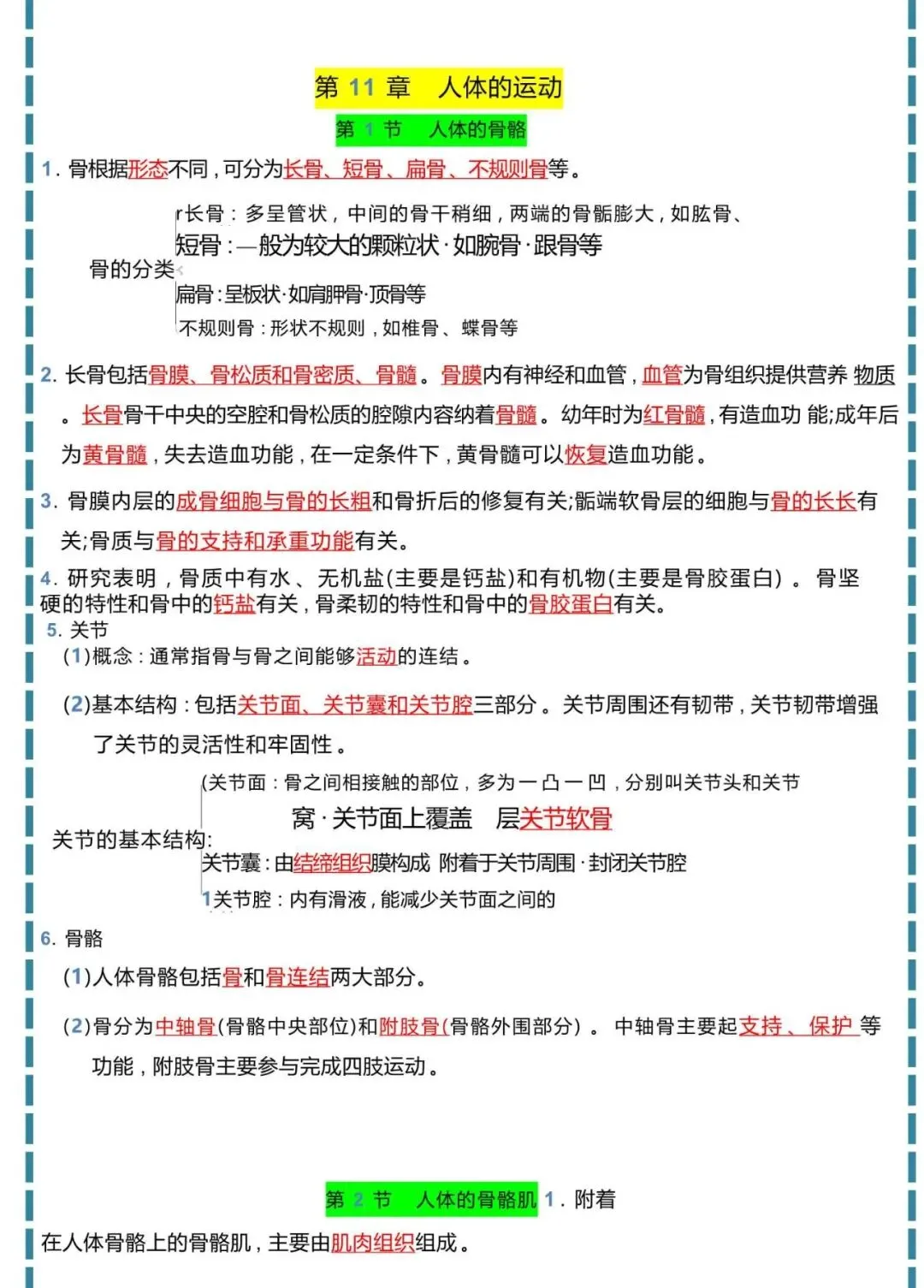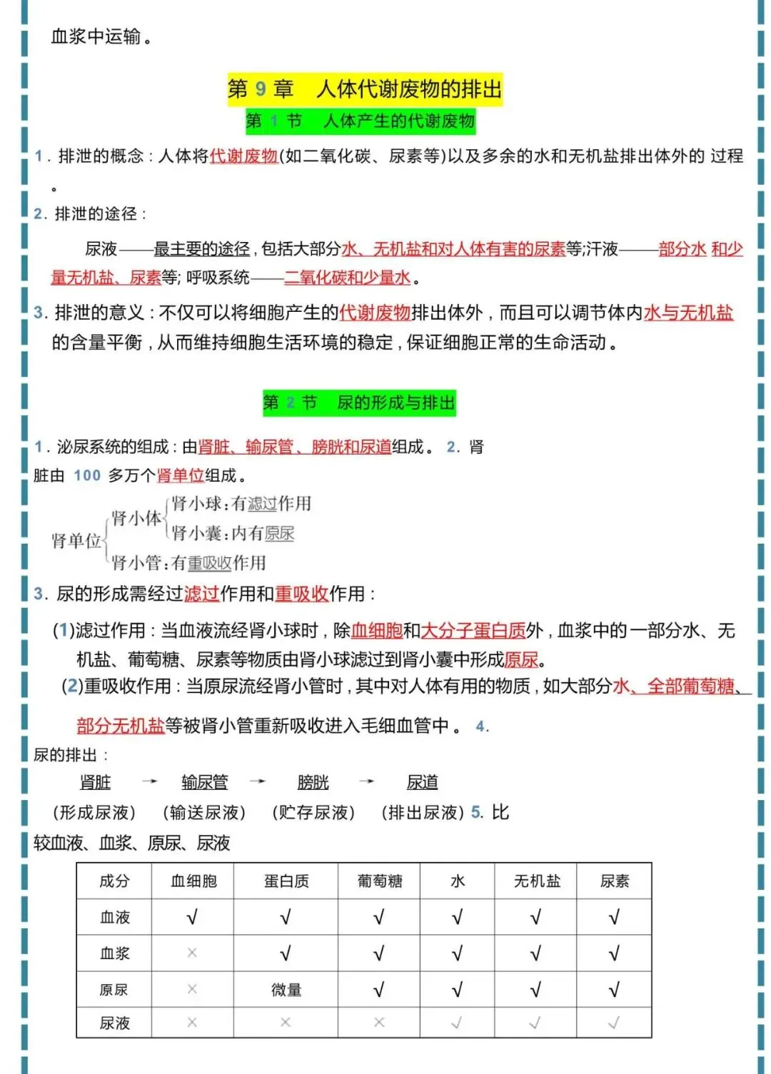 今天老师给大家整理了:七年级下册生物(北师大版):全册考点总结,电子打印版!