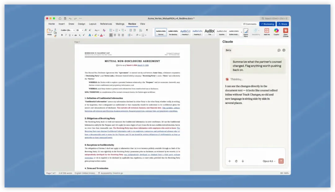 光有战略眼光不够,产品力才是检验一切的标准。Claude for Word究竟有哪些”杀手锏”,让它足以打动挑剔的法律和金融从业者?