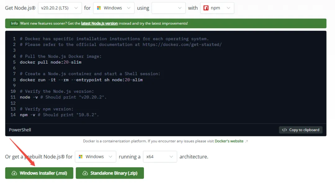 1. 安装 Node.js 版本 v20.20.2 (LTS)