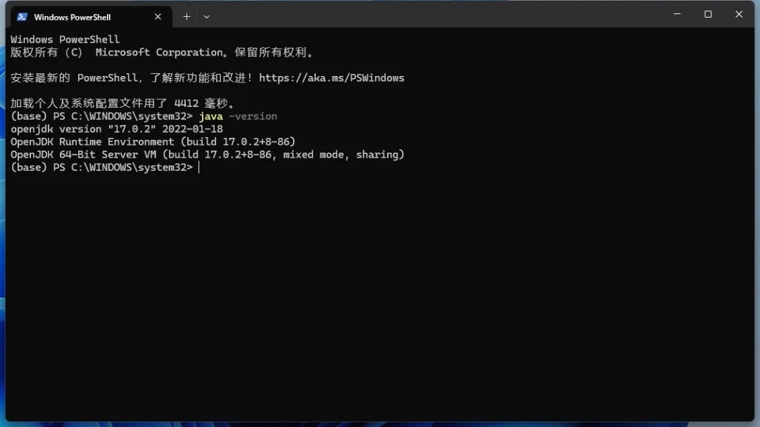 验证:重新打开一个PowerShell,输入 java -version,需显示 17