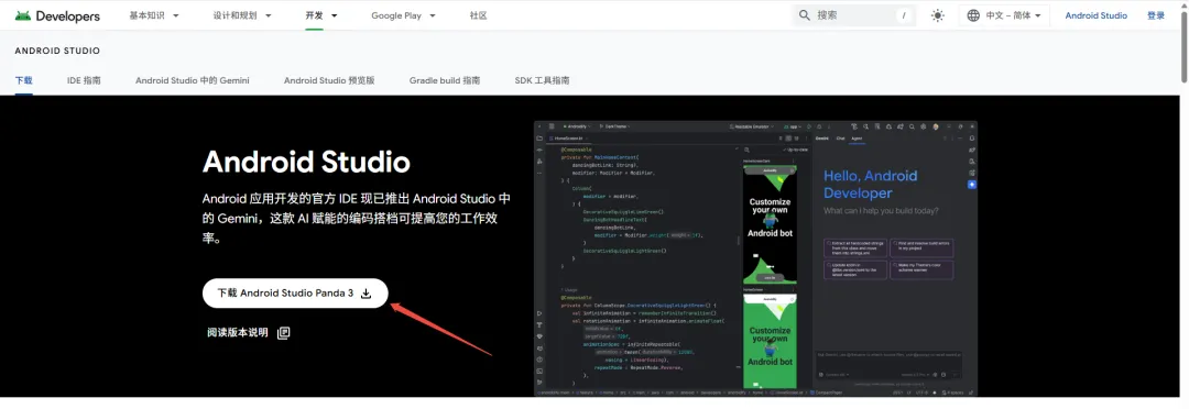 安装 Android Studio,下载地址:https://developer.android.google.cn/studio?hl=zh-cn