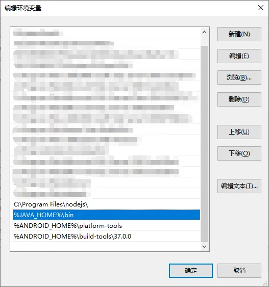 在 Path 变量中添加 %ANDROID_HOME%\platform-tools 和 %ANDROID_HOME%\build-tools\版本号。