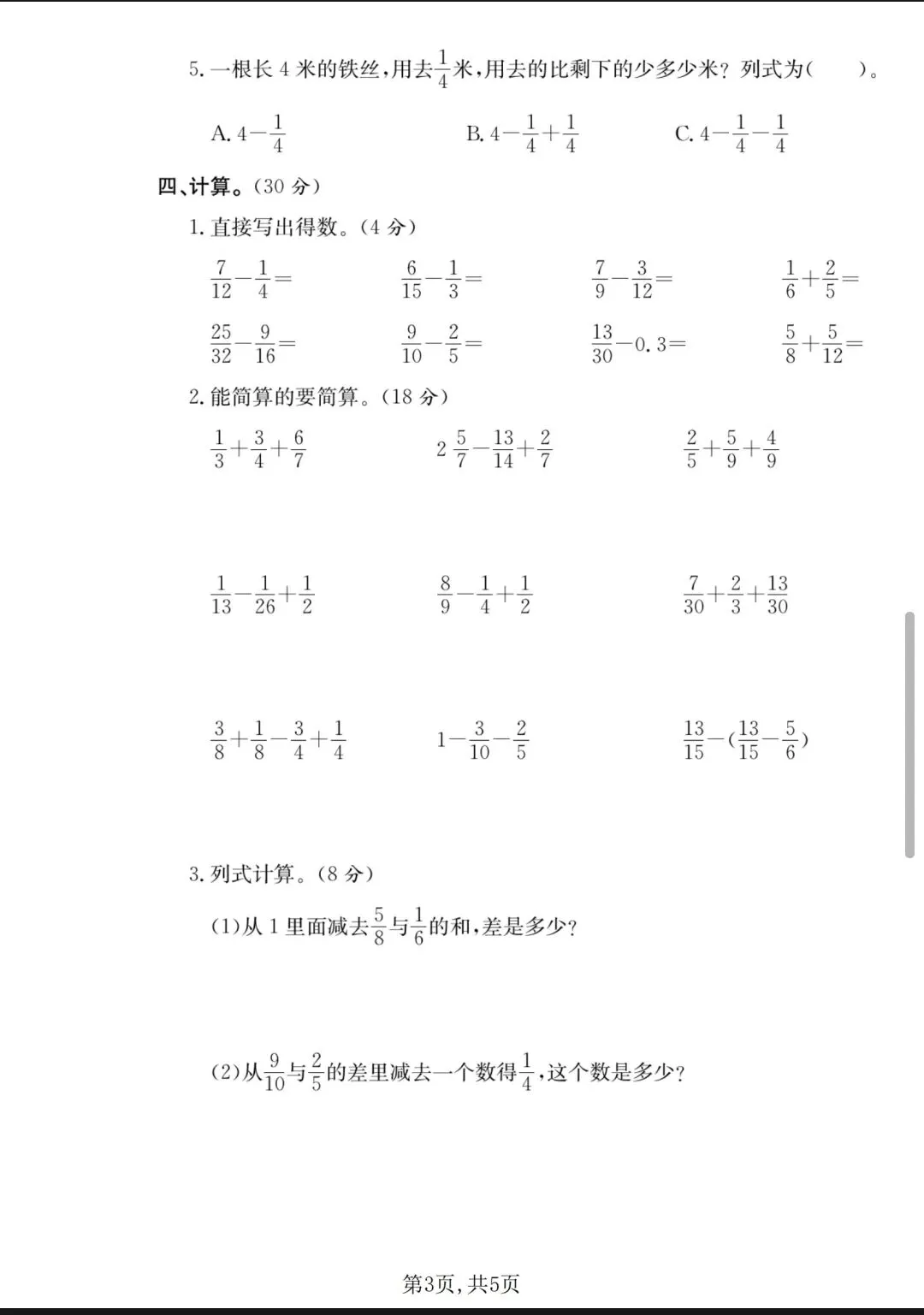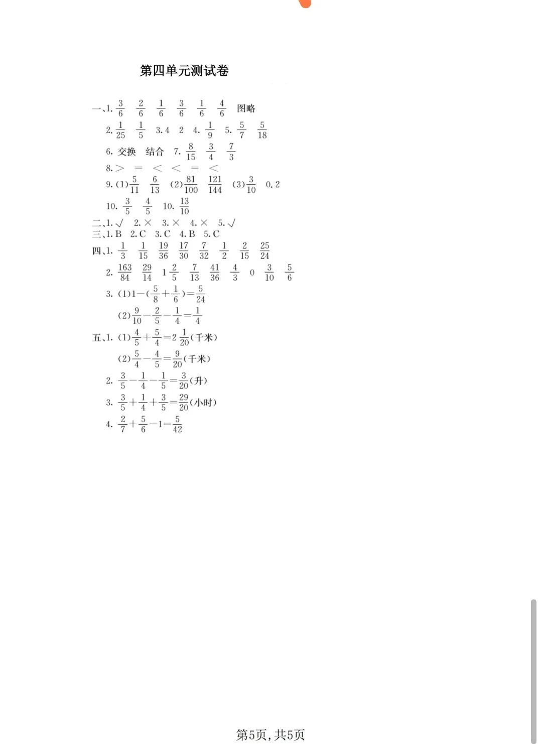 26春五下数学西师版真题《第四单元测试卷》电子版