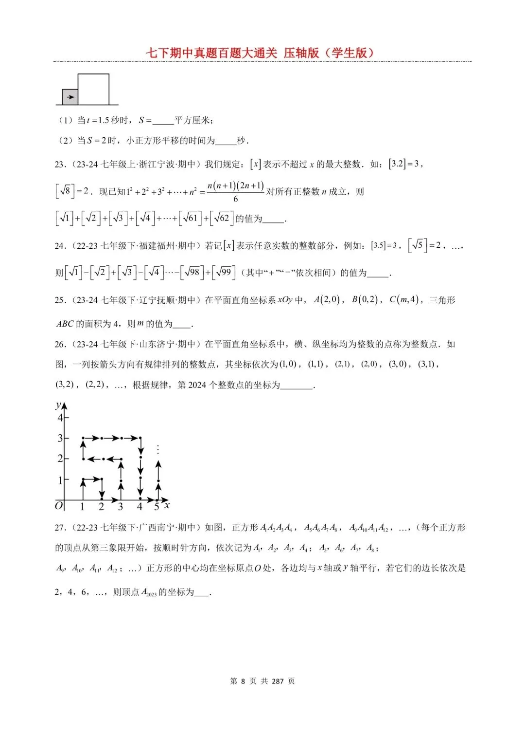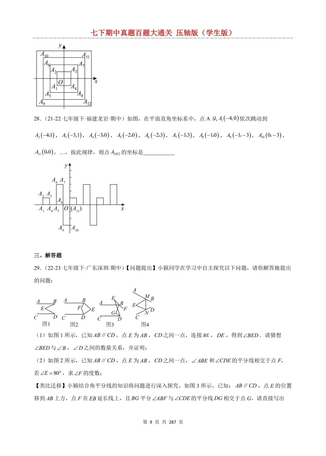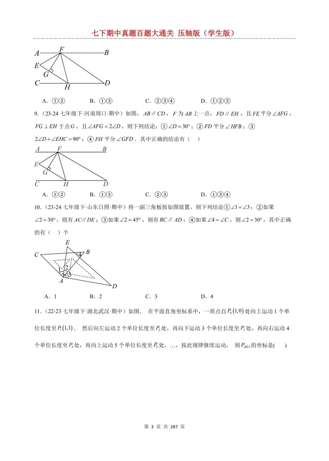 七年级下册数学百题大通关含答案可打印