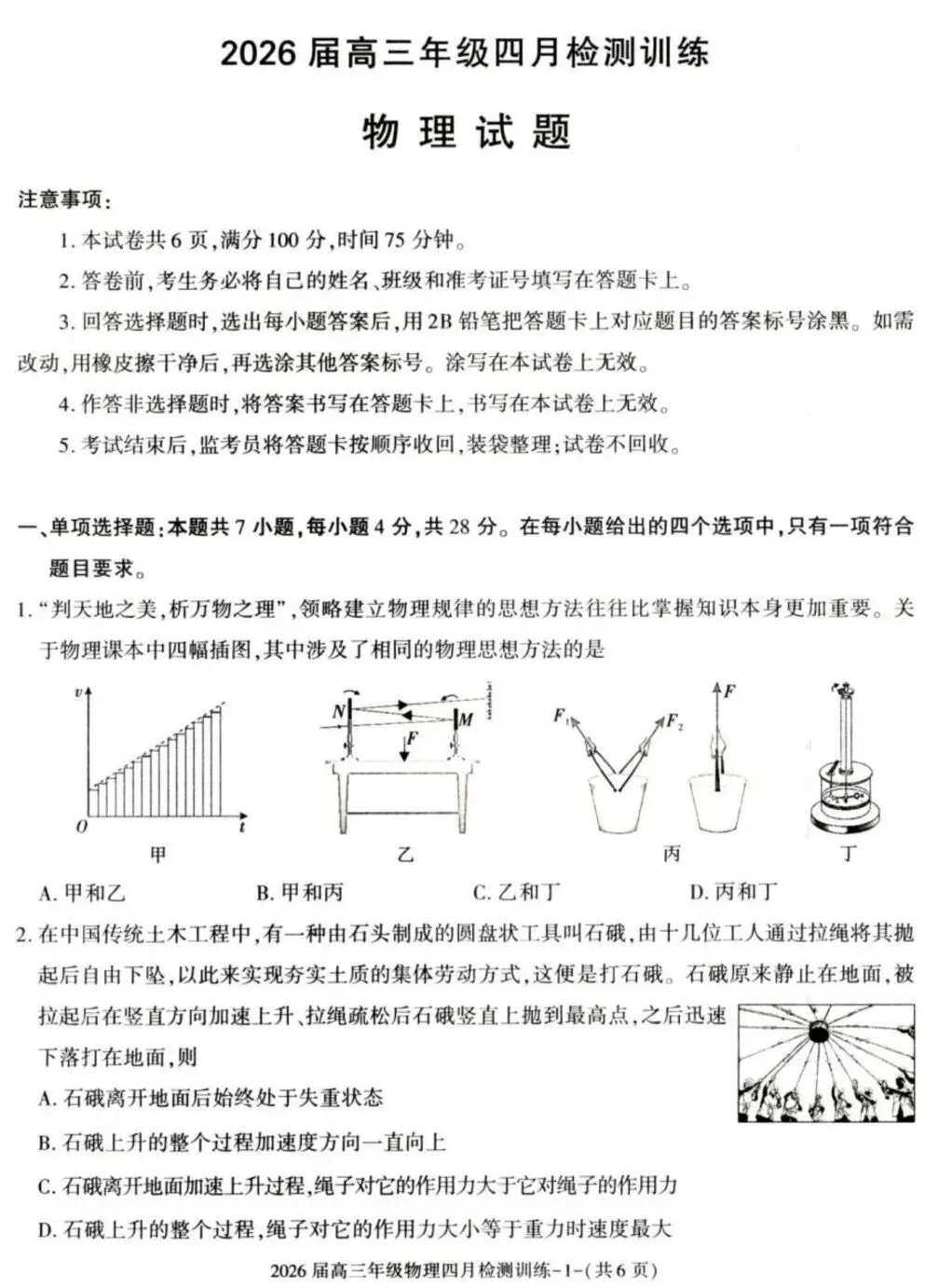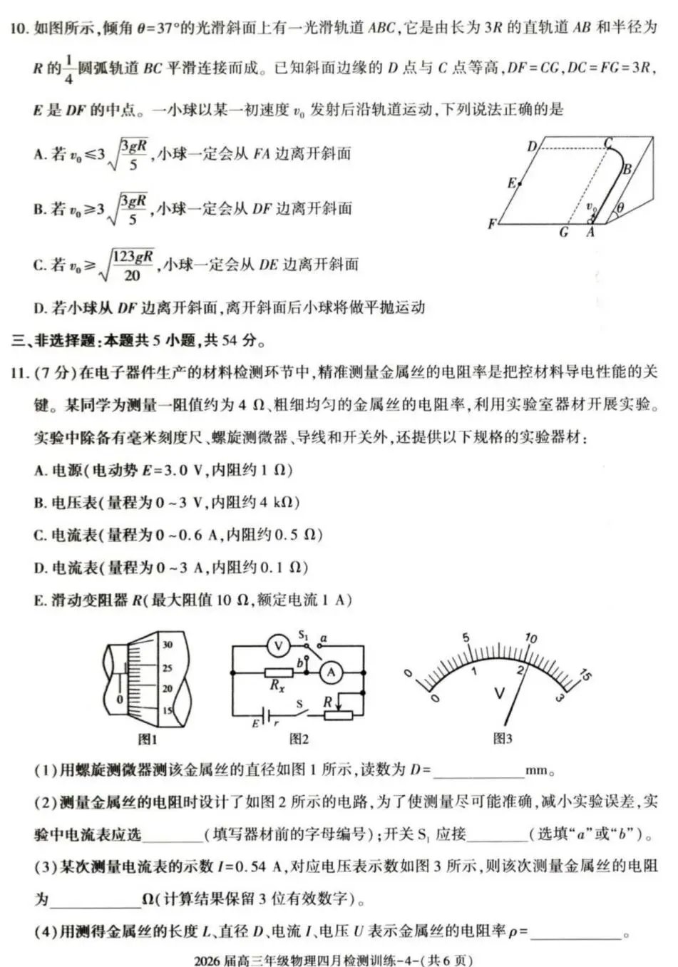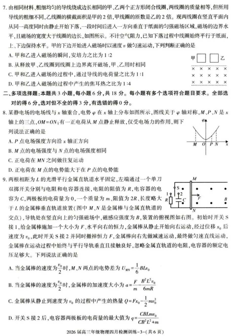 2026届陕西T8联考高三下学期四月检测训练物理试题及答案