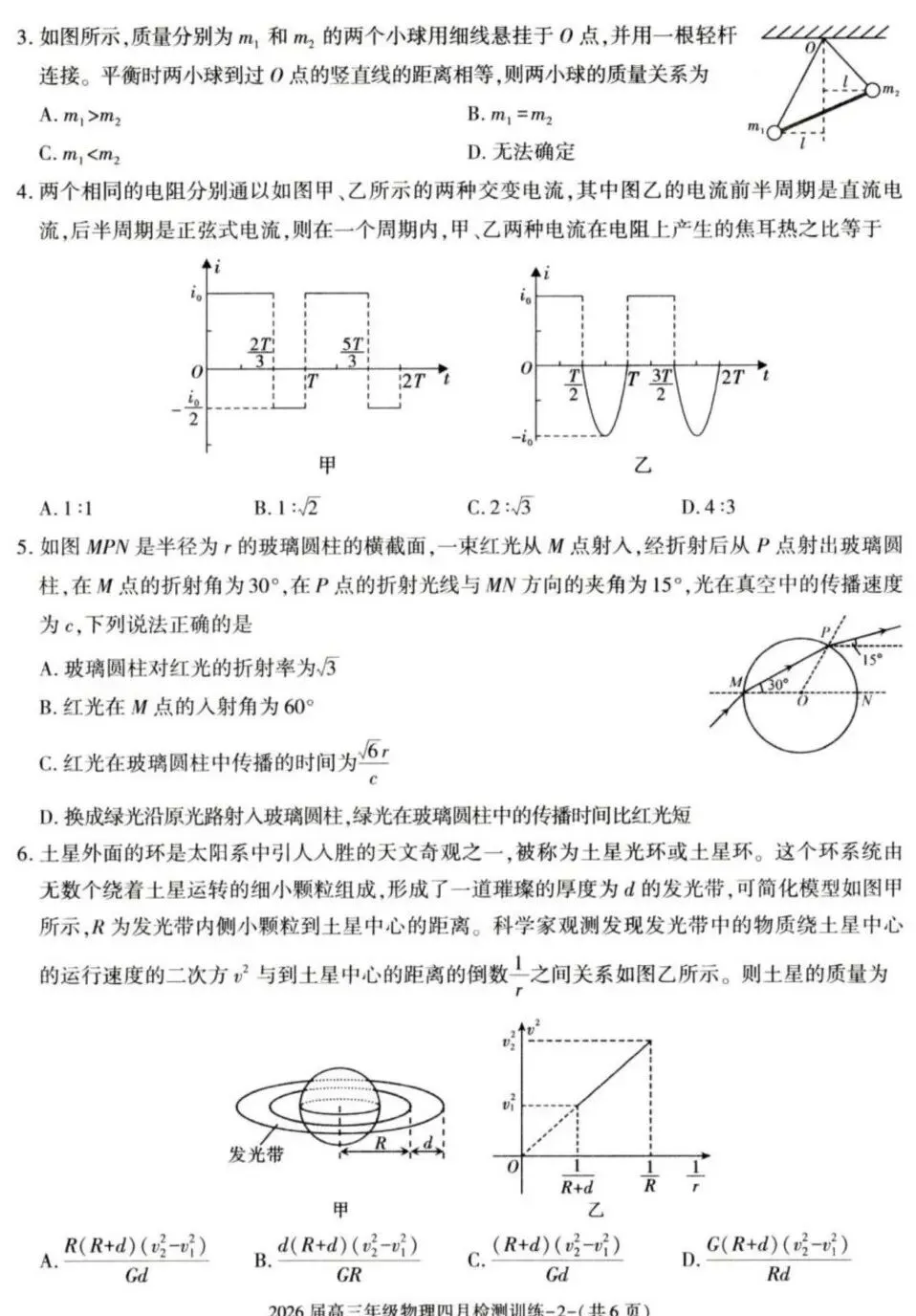 高中物理最新试题2026年4月13日