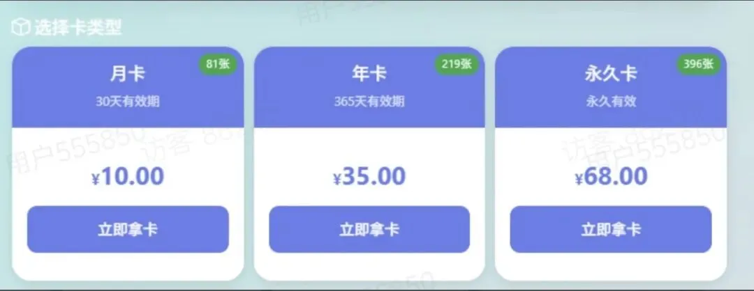 为了让合伙人拥有更大的利润空间,我们制定了极具优势的卡密拿货政策:合伙人初期,月卡拿货成本仅10元,年卡35元,永久卡68元!并且这只是起步政策,合伙人后续发展越好,拿货价格还会进一步降低,利润空间持续扩大,让大家赚得更多。