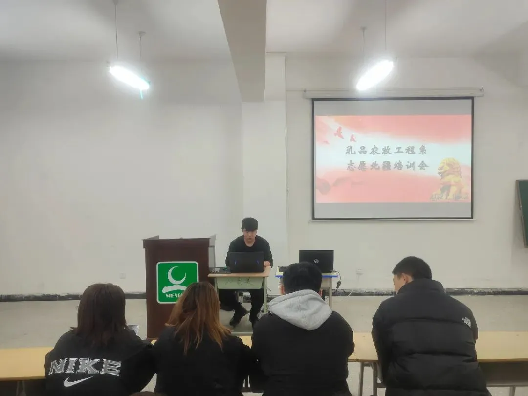 为更好服务我系青年志愿者,记录好志愿服务活动和服务时长,乳品农牧工程系团总支于12月2日晚自习,在创新楼D411举行了志愿北疆APP操作使用方法培训。校团委志愿北疆学生负责人杨彦鑫和我系各班级负责人参会。