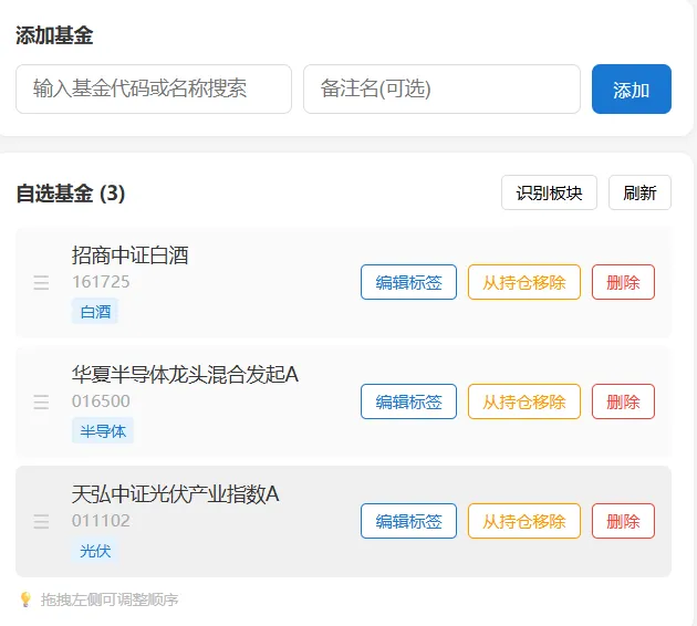 添加基金后可以自动识别:
