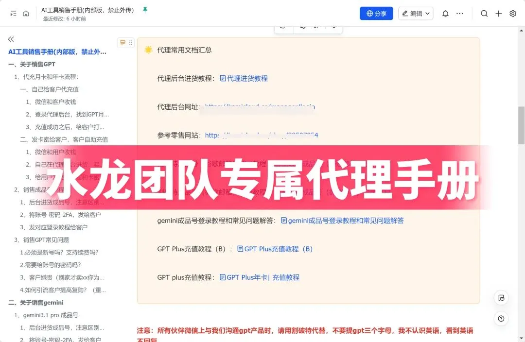 我们不仅代理提供专业的销售手册和素材库,还会请专业的AI导师开AI工具实战营,让你上手最新的AI,让你更好销售,更好开单。