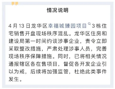 深圳一楼盘遭哄抢,区住建局发布情况说明:严肃处理涉事人员