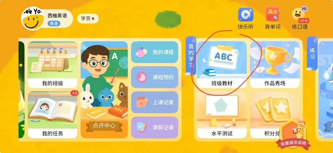 a. 我的班级 →班级教材 →课件(选择对应的音/视频)