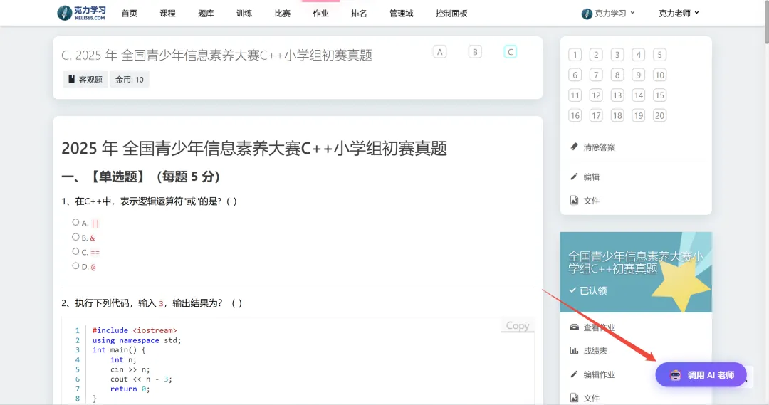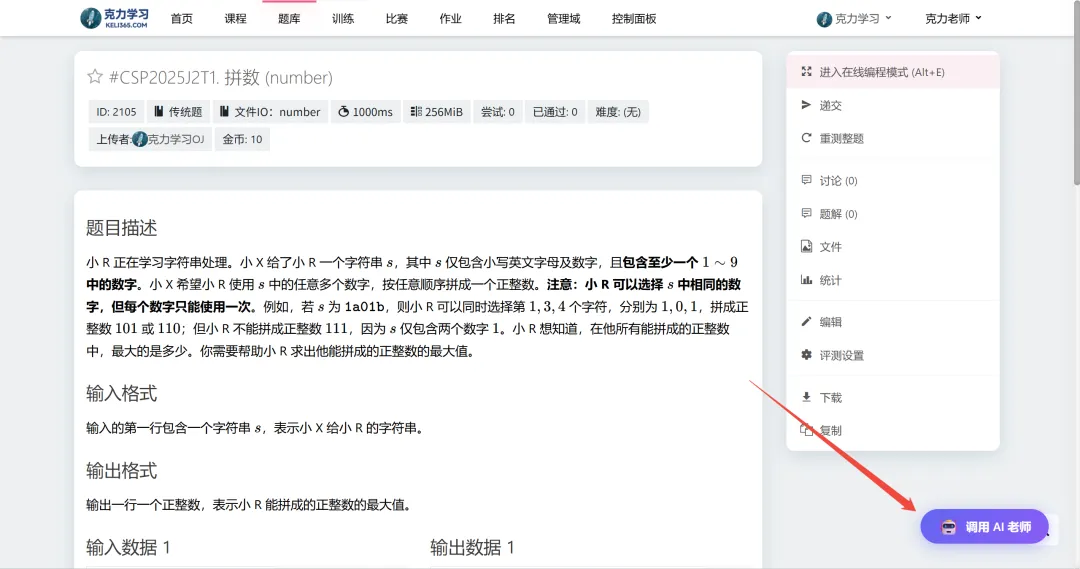 在题目详情页面,AI会自动读取题面,不需要再提供题目详情!