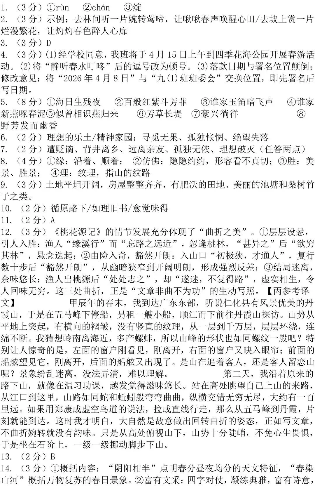 14.(3分)本文以“阴阳相半春染山河”为题有何妙处?